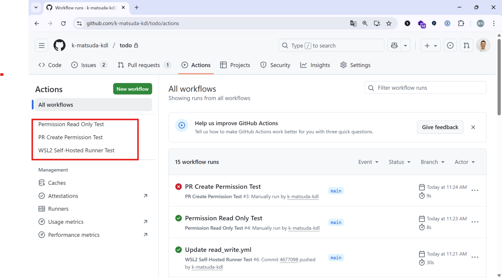 無効化しておけば、万が一workflowファイルが作成されたとしても、実行されることはありません。手元の検証では、私が自作したSelf Hosted Runnerは、無効化すると動作しませんでした。